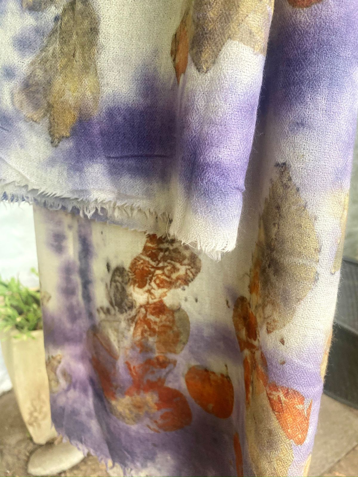 Naturally imprinted with two species of Eucalyptus, found in the garden and alongside the river here in Greyton, with the bark of the majestic Logwood tree sharing its purple hue.