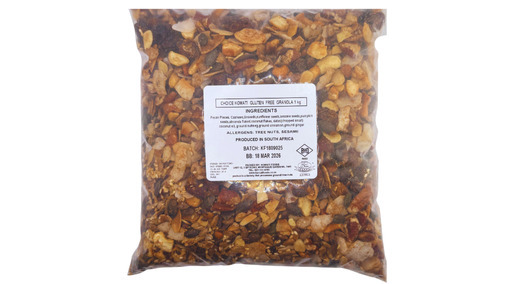 • kilo packs: Pecan, cashews, linseeds, sunflower seeds, sesame seeds, pumpkin seeds, almonds, coconut, dates, coconut oil, nutmeg, cinnamon, ginger — 1.0g — R212.19
